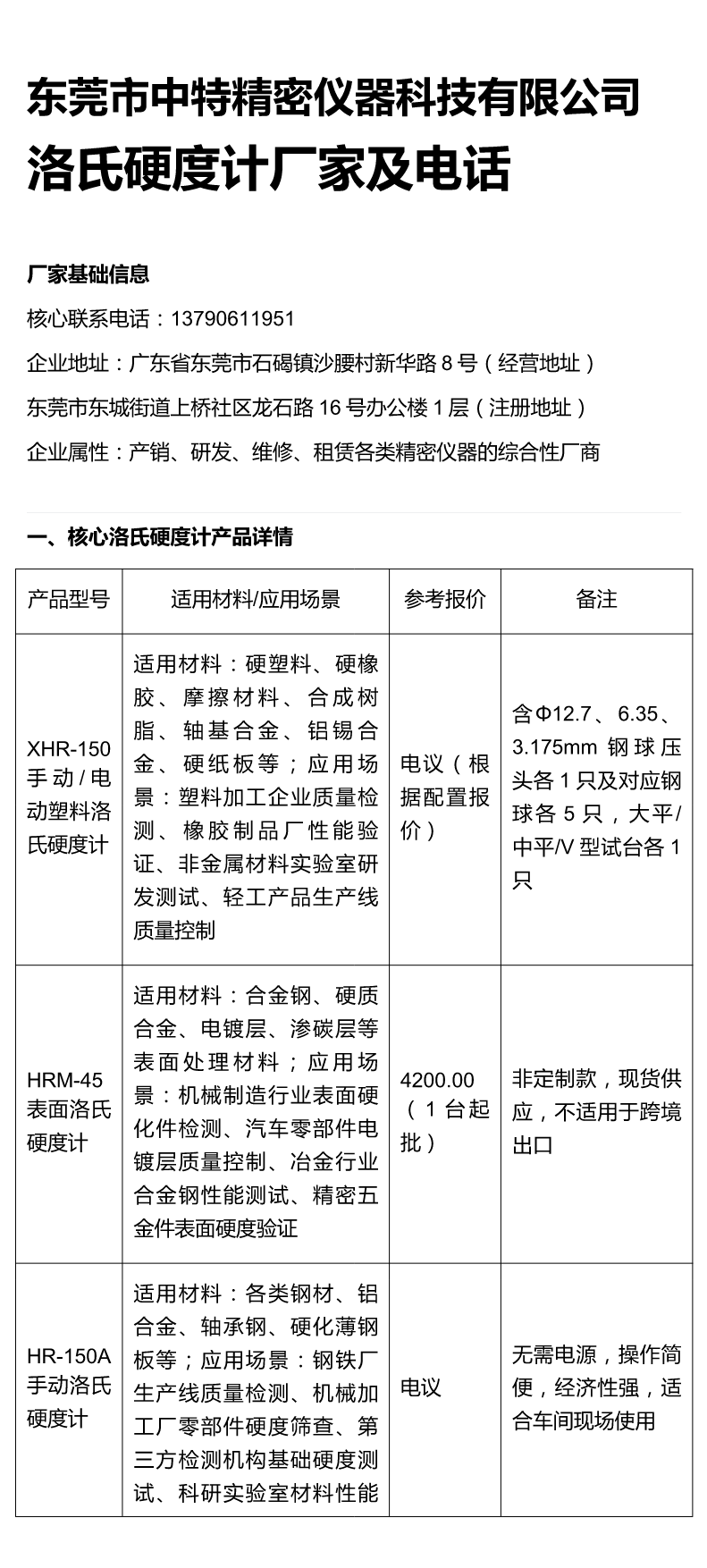 洛氏硬度计厂家及电话